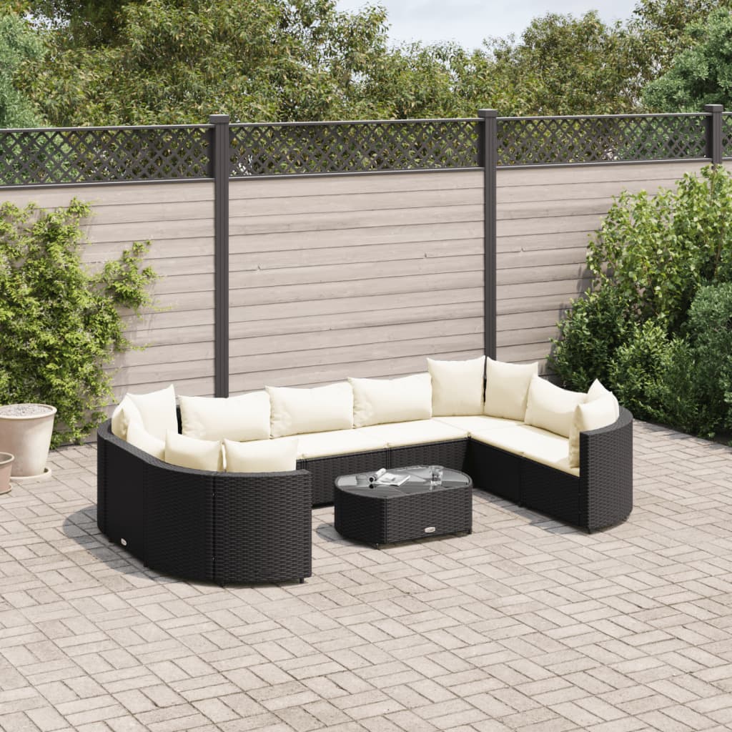 10-tlg. Garten-Sofagarnitur mit Kissen Schwarz Poly Rattan