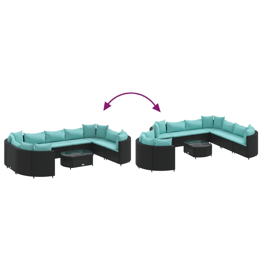 10-tlg. Garten-Sofagarnitur mit Kissen Schwarz Poly Rattan