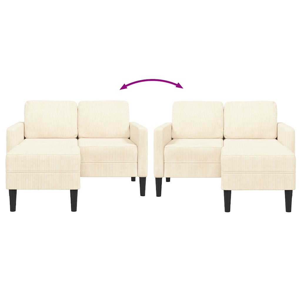 2-Sitzer-Sofa mit Chaiselongue L-Form Creme 125 cm Leinen
