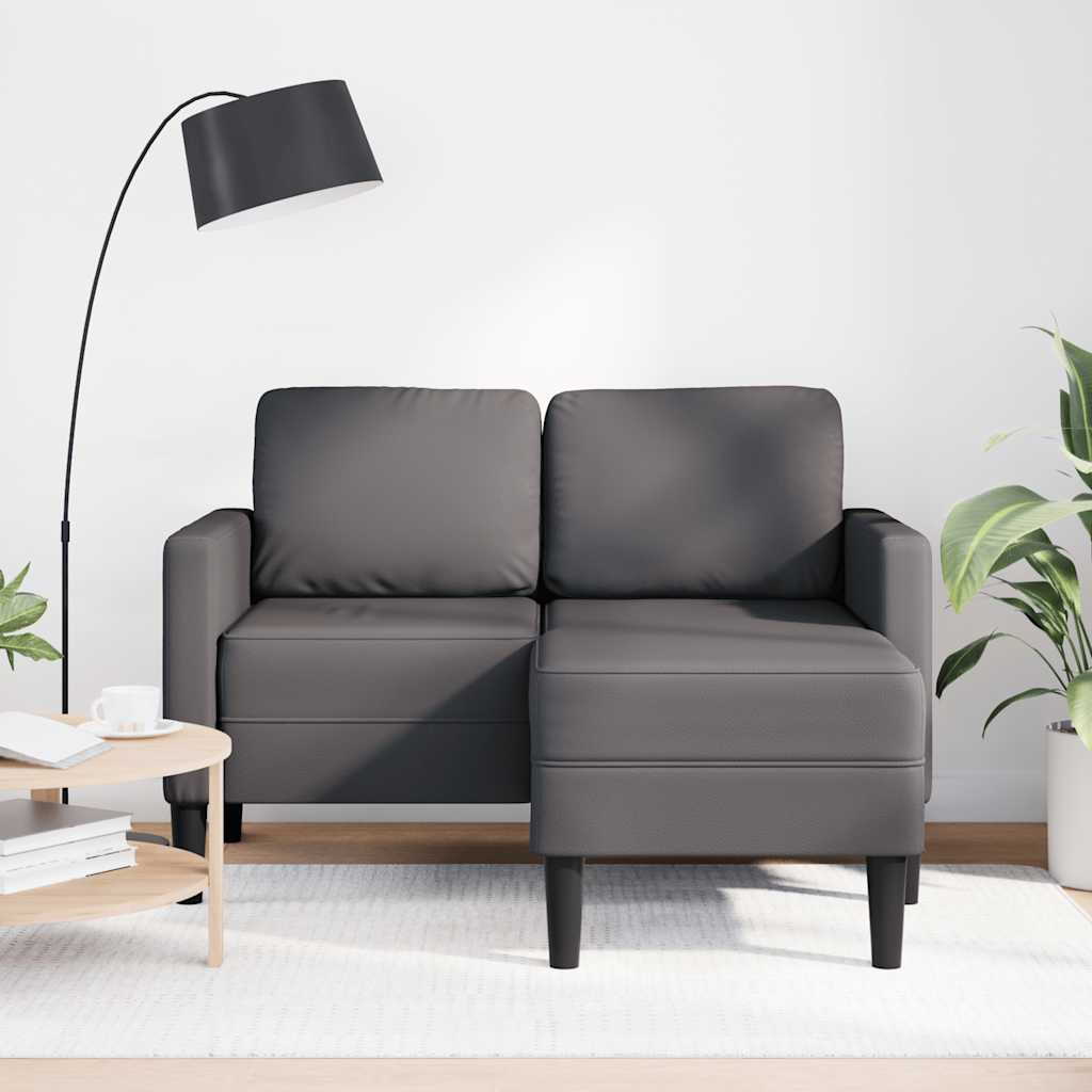 2-Sitzer-Sofa mit Chaiselongue L-Form Grau 125 cm Kunstleder
