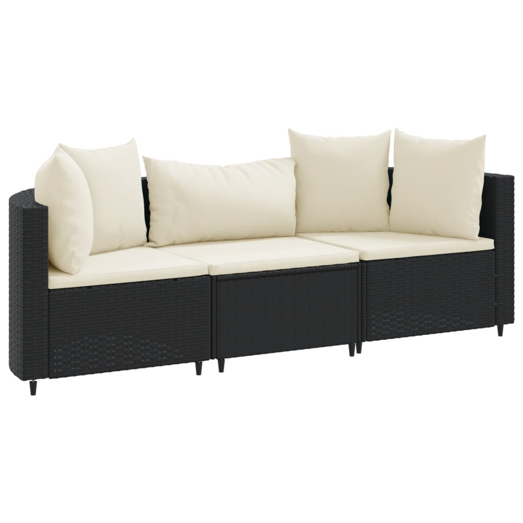 3-tlg. Garten-Sofagarnitur mit Kissen Schwarz Poly Rattan