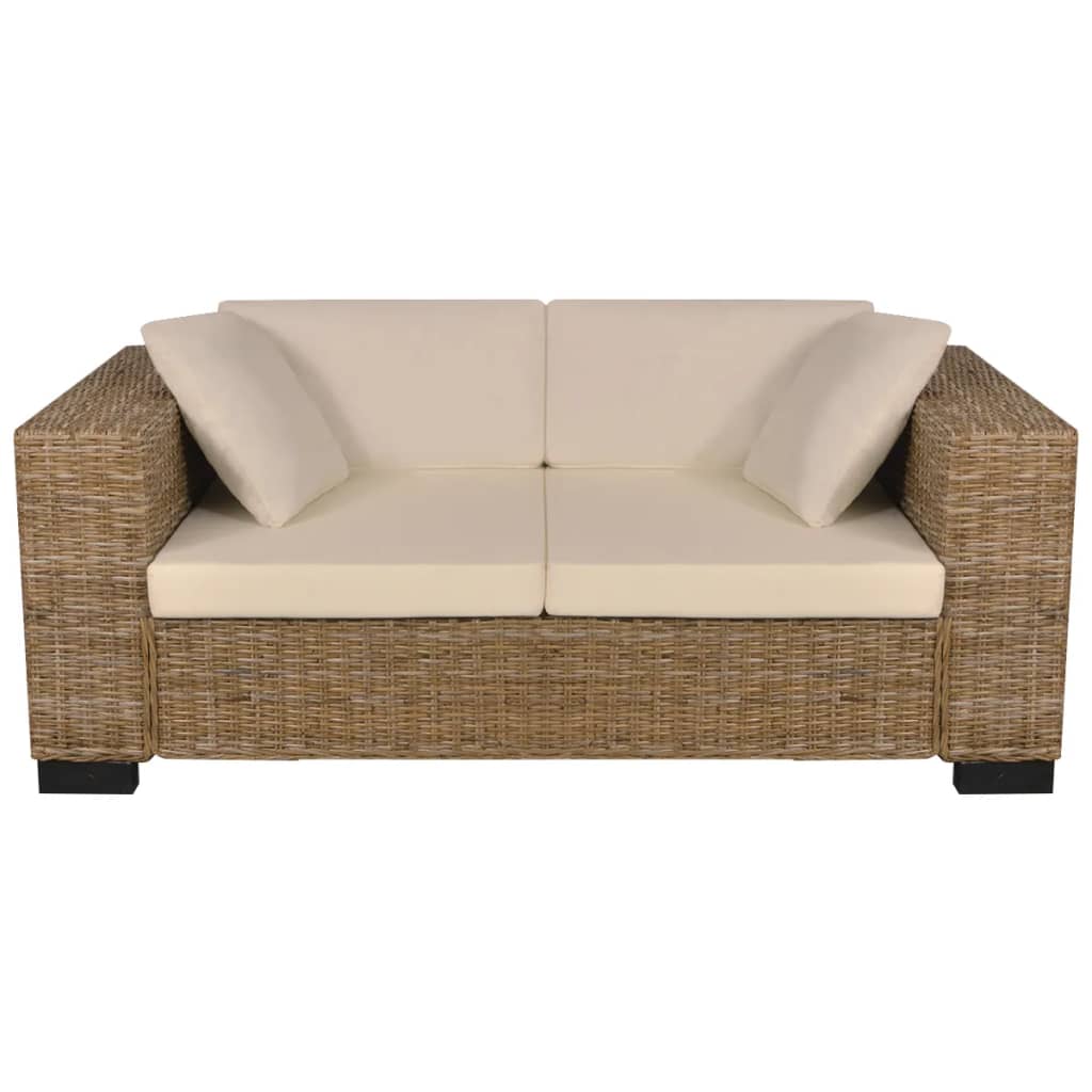 Dieses Rattansofa vereint Stil und Funktionalität und wird Ihren Wohnraum wunderbar ergänzen. Aus hochwertigem, echtem Rattan hergestellt, ist das Sofa einfach zu reinigen, strapazierfähig und für den täglichen Gebrauch bestens geeignet. Dieses Loungesofa verfügt über einen stabilen Holzrahmen, der für Langlebigkeit und Stabilität sorgt. Die dicken Sitz- und Rückenpolster sind äußerst bequem und dank ihrer abnehmbaren Bezüge sogar waschbar. Darüber hinaus, tragen die breiten Armlehnen zu Ihrem Sitzkomfort bei. Die Lieferung beinhaltet ein 2-Sitzer-Sofa, zwei Sitzkissen, zwei Rückenkissen und zwei Sofakissen.