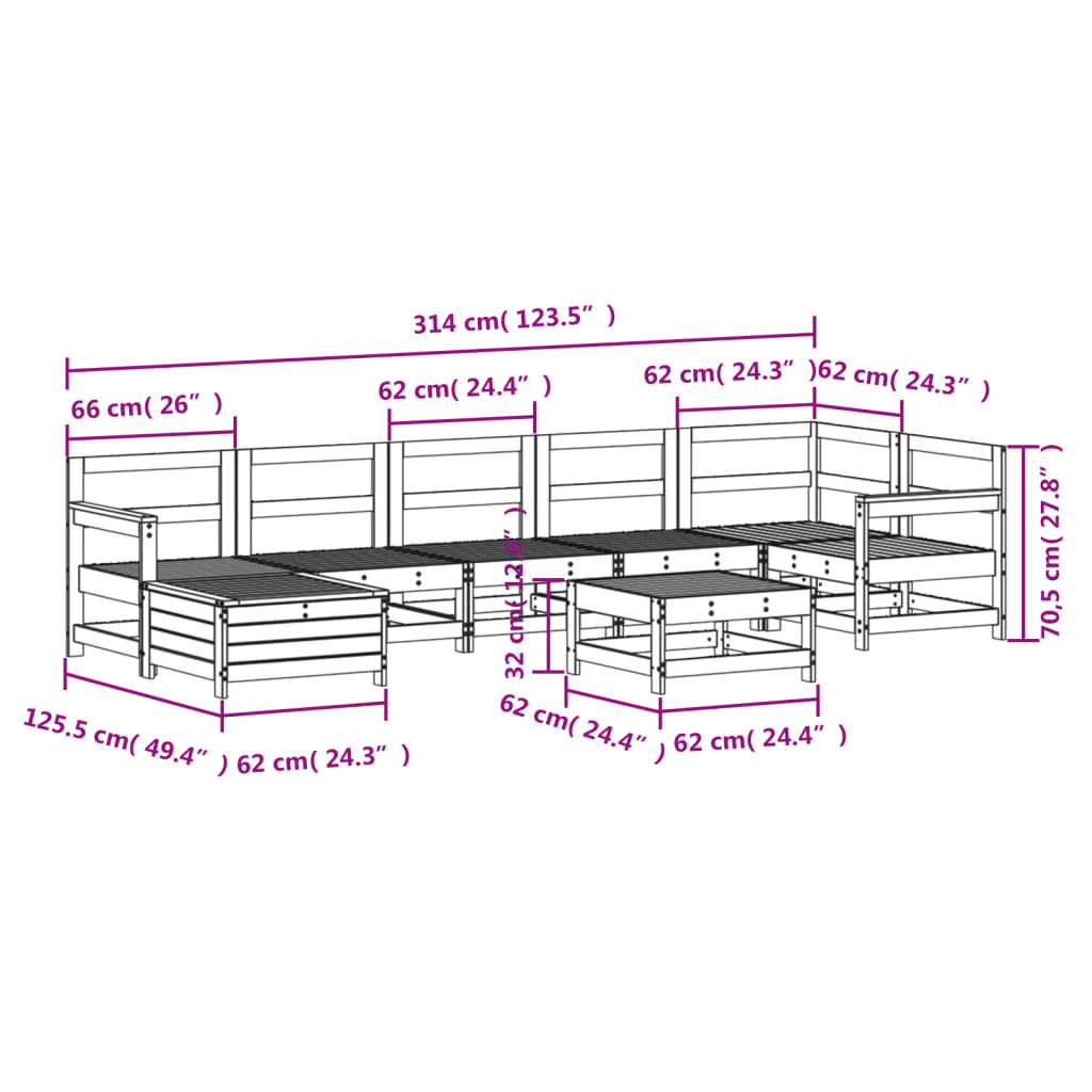 8-tlg. Garten-Sofagarnitur Weiß Massivholz Kiefer