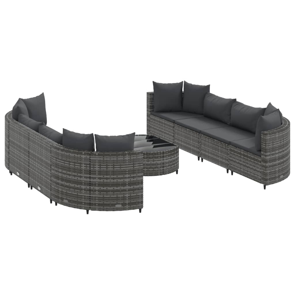 9-tlg. Garten-Sofagarnitur mit Kissen Grau Poly Rattan