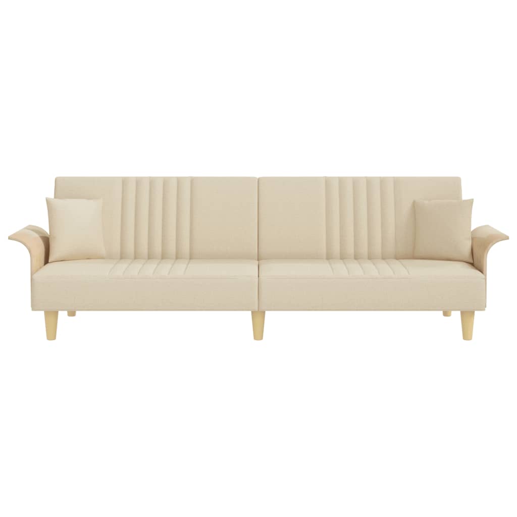 Dieses Schlafsofa eignet sich perfekt für die Übernachtung von Gästen und bietet tagsüber eine bequeme Sitzgelegenheit. Strapazierfähiges Material: Stoff weist eine schlichte und saubere Optik auf und ist außerdem atmungsaktiv und langlebig. Verstellbare Rückenlehne: Du kannst die beiden separaten Rückenlehnen des Bettsofas teilweise oder ganz nach unten schieben, um einen idealen Platz für ein Nickerchen oder ein Doppelbett zu schaffen. Bequemes Sitzerlebnis: Mit dick gepolsterten Sitzflächen, Armlehnen und Rückenlehnen versehen, ist das Schlafsofa sehr bequem.Praktische Kissen: Diese Kissen werten nicht nur deine Einrichtung auf, sondern sorgen auch für zusätzlichen Komfort beim Sitzen oder Liegen. Robuster und stabiler Rahmen: Der Rahmen aus Sperrholz verleiht der Schlafcouch Robustheit und Stabilität.