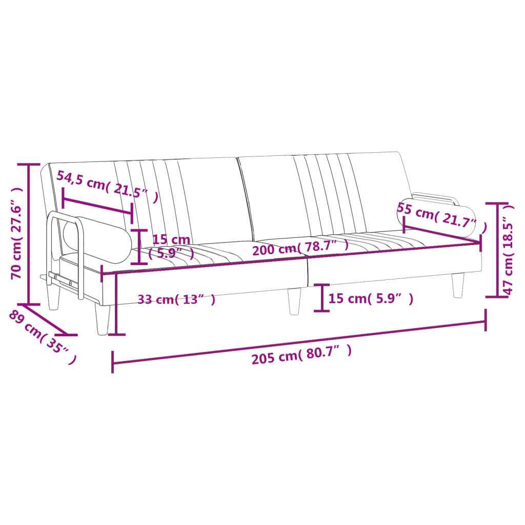 Dieses Schlafsofa eignet sich perfekt für die Übernachtung von Gästen und bietet tagsüber eine bequeme Sitzgelegenheit. Samtsofa: Samt ist ein weicher, luxuriöser Stoff, der sich durch seinen dichten Flor aus gleichmäßig geschnittenen Fasern auszeichnet. Samt fühlt sich unverwechselbar weich an und ist angenehm zu berühren. Verstellbare Rückenlehne: Du kannst die beiden separaten Rückenlehnen des Bettsofas teilweise oder ganz nach unten schieben, um einen idealen Platz für ein Nickerchen oder ein Doppelbett zu schaffen. Bequemes Sitzerlebnis: Mit dick gepolsterten Sitzflächen, Armlehnen und Rückenlehnen versehen, ist das Schlafsofa sehr bequem.Praktische Kissen: Diese Kissen werten nicht nur deine Einrichtung auf, sondern sorgen auch für zusätzlichen Komfort beim Sitzen oder Liegen. Robuster und stabiler Rahmen: Der Rahmen aus Sperrholz verleiht der Schlafcouch Robustheit und Stabilität. Gut zu wissen:Um die Montage so einfach wie möglich zu machen, wird jedes Produkt mit einer Anleitung geliefert.
