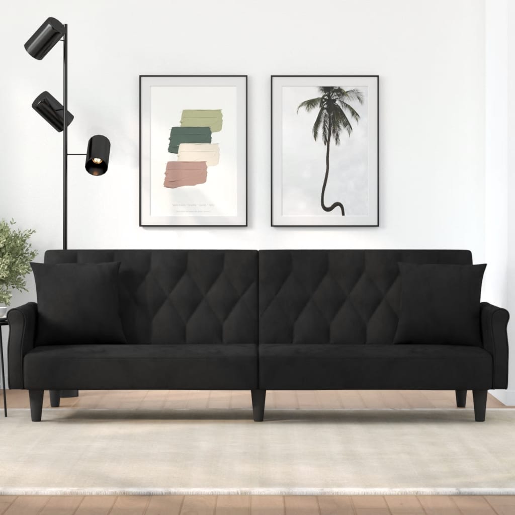 Dieses Schlafsofa eignet sich perfekt für die Übernachtung von Gästen und bietet tagsüber eine bequeme Sitzgelegenheit. Samtsofa: Samt ist ein weicher, luxuriöser Stoff, der sich durch seinen dichten Flor aus gleichmäßig geschnittenen Fasern auszeichnet. Samt fühlt sich unverwechselbar weich an und ist angenehm zu berühren. Verstellbare Rückenlehne: Du kannst die beiden separaten Rückenlehnen des Bettsofas teilweise oder ganz nach unten schieben, um einen idealen Platz für ein Nickerchen oder ein Doppelbett zu schaffen. Bequemes Sitzerlebnis: Mit dick gepolsterten Sitzflächen, Armlehnen und Rückenlehnen versehen, ist das Schlafsofa sehr bequem.Praktische Kissen: Diese Kissen werten nicht nur deine Einrichtung auf, sondern sorgen auch für zusätzlichen Komfort beim Sitzen oder Liegen. Robuster und stabiler Rahmen: Der Rahmen aus Sperrholz verleiht der Schlafcouch Robustheit und Stabilität. Gut zu wissen:Um die Montage so einfach wie möglich zu machen, wird jedes Produkt mit einer Anleitung geliefert.