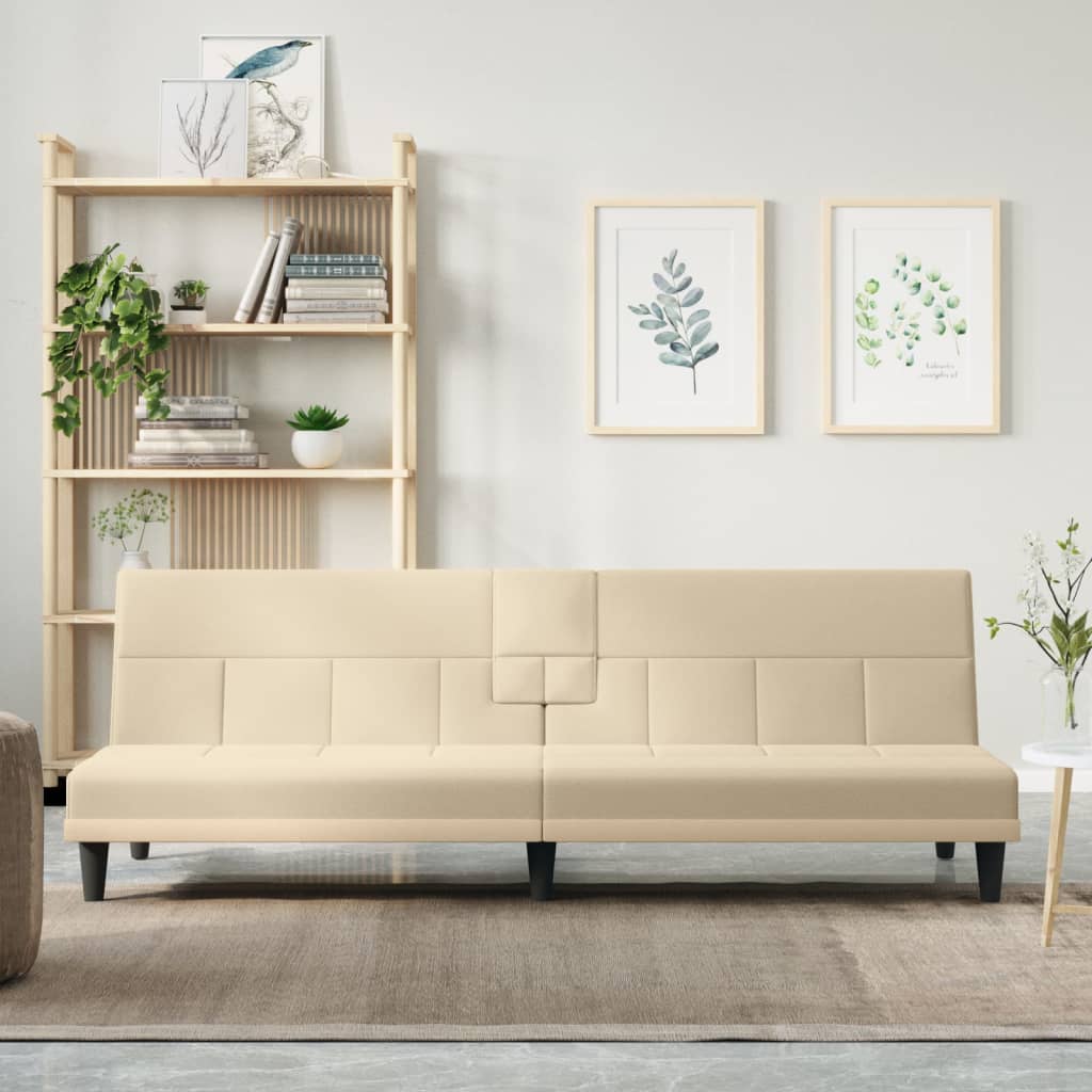 Schlafsofa mit Getränkehaltern Creme Stoff