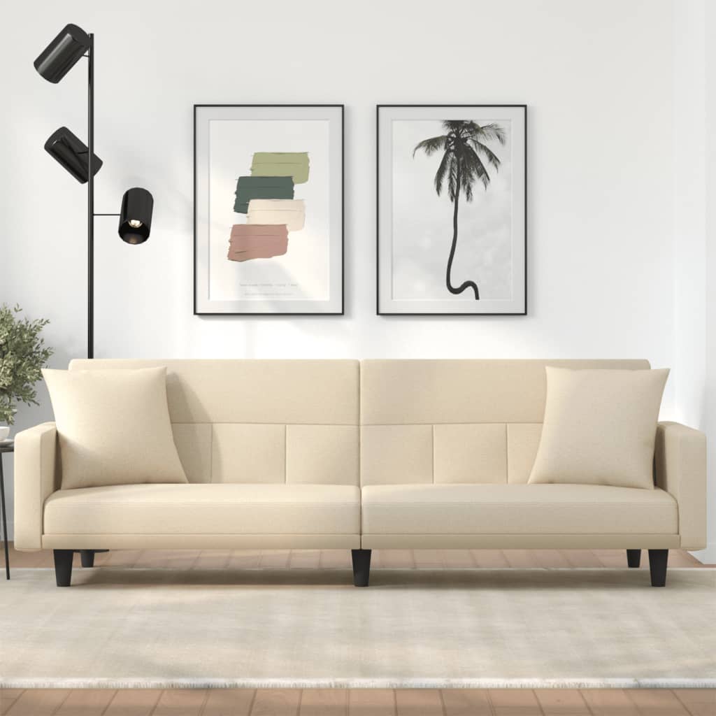 Dieses Schlafsofa eignet sich perfekt für die Übernachtung von Gästen und bietet tagsüber eine bequeme Sitzgelegenheit. Strapazierfähiges Material: Stoff weist eine schlichte und saubere Optik auf und ist außerdem atmungsaktiv und langlebig.Verstellbare Rückenlehne: Du kannst die beiden separaten Rückenlehnen des Bettsofas teilweise oder ganz nach unten schieben, um einen idealen Platz für ein Nickerchen oder ein Doppelbett zu schaffen.Bequemes Sitzen: Das Schlafsofa ist mit Rücken- und Armlehnen ausgestattet, um dir ein bequemes Sitzerlebnis zu bieten.Robuster und stabiler Rahmen: Der Rahmen aus Sperrholz verleiht der Schlafcouch Robustheit und Stabilität. Gut zu wissen:Um die Montage so einfach wie möglich zu machen, wird jedes Produkt mit einer Anleitung geliefert.