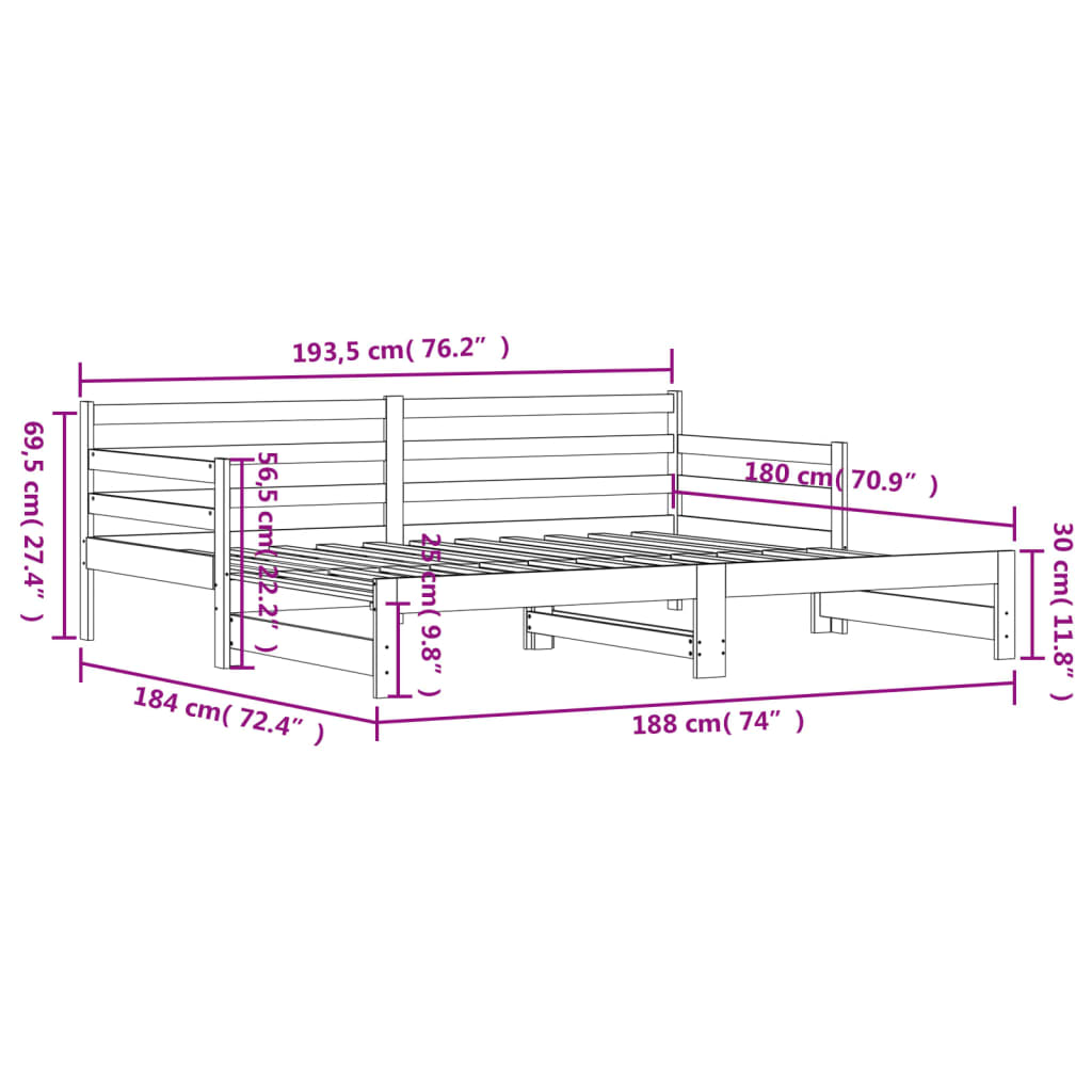 Dieses ausziehbare 2-in-1-Tagesbett, das sowohl als Sofa als auch als Bett dient, ist eine praktische und auffällige Ergänzung zu deinem Wohn- oder Schlafzimmer. Massives Kiefernholz: Massives Kiefernholz ist ein wunderschönes Naturmaterial. Kiefernholz weist eine gerade Maserung auf und die Aststellen verleihen dem Material seine charakteristische, rustikale Optik. Aus massivem Kiefernholz gefertigt, ist dieses Gästebett stabil und langlebig.Vielseitiges Tagesbett: Das Schlafsofa fungiert tagsüber als Sofa und lässt sich nachts durch Ausziehen des Rollkastens leicht in ein Doppelbett verwandeln - eine praktische Lösung, um Gästen einen bequemen Schlafplatz zu bieten und den Platz zu maximieren.Zusätzlicher Stauraum: Unter dem Tagesbett gibt es zusätzlichen Platz für Schubladen oder Aufbewahrungsboxen, um Kleidung, Socken, Spielzeug, Kissen usw. ordentlich zu verstauen. Gut zu wissen:Die Lieferung beinhaltet nur einen Bettrahmen. Die Matratzen sind nicht enthalten. In unserem Shop findest du auch passende Matratzen.