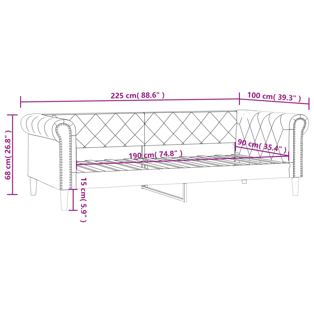 Dieses 2-in-1-Tagesbett, das sowohl als Sofa als auch als Bett dient, ist eine praktische und auffällige Ergänzung zu deinem Wohn- oder Schlafzimmer. Vielseitiges Tagesbett: Das Schlafsofa kann tagsüber als Sofa und nachts als Bett verwendet werden, um Übernachtungsgästen einen gemütlichen Schlafplatz zu bieten.Bequemes Erlebnis: Das Tagesbett ist mit Kunstleder bezogen. Es ist daher schmutzabweisend und lässt sich leicht mit einem feuchten Tuch reinigen. Durch die glatte Oberfläche weist das Tagesbett eine luxuriöse Optik und die Schönheit von Echtleder auf. Zudem sind die Rückenlehne und die Armlehnen des Gästebettes mit Schaumstoff gepolstert, um höchsten Sitzkomfort zu bieten.Robustes und stabiles Gestell: Das Hauptgestell des Schlafsofas besteht aus Metall und Massivholz, was das Sofa sehr robust und langlebig macht. Die Latten aus Sperrholz ermöglichen nicht nur eine bessere Luftzirkulation, damit die Matratze länger frisch bleibt, sondern sorgen auch für eine bessere Tragfähigkeit und Stabilität.Modernes Design: Das Couchbett weist ein modernes Design auf, das sich durch klare Linien, einen minimalistischen Look sowie Natürlichkeit auszeichnet und deiner Einrichtung eine moderne Note verleiht! Gut zu wissen:Bei diesem Bett ist keine Matratze im Lieferumfang enthalten. Wir bieten jedoch eine große Auswahl an Matratzen an. Du kannst in unserem Shop nach einer passenden Matratze suchen.