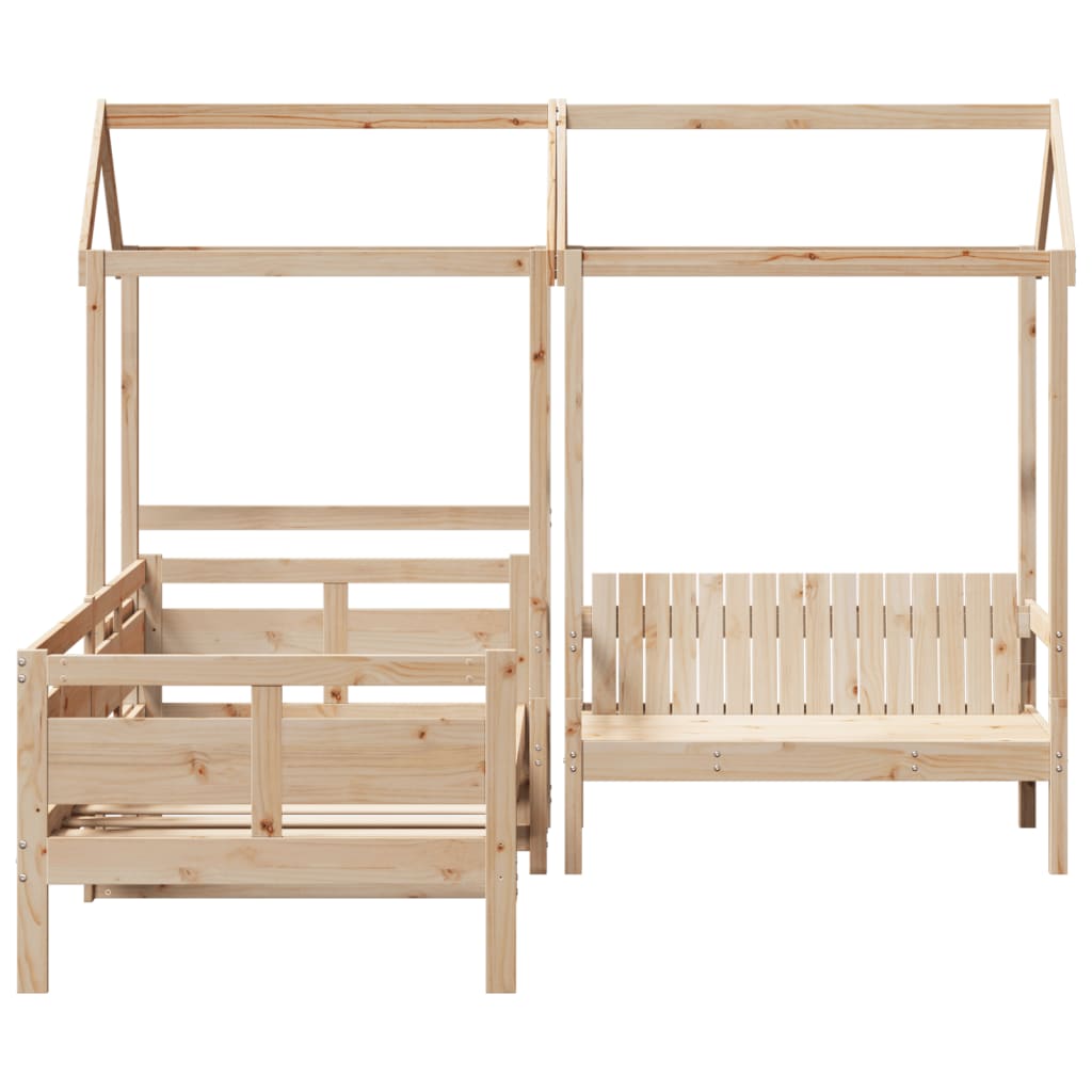 Dieses vielseitige Tagesbett mit Bank kann sowohl als Bett-Set im Schlafzimmer verwendet werden, als auch als Sofa-Set im Wohnzimmer dienen. Es erfüllt die unterschiedlichsten Bedürfnisse und bietet viel Platz zum Schlafen oder Ausruhen. Massives Kiefernholz: Massives Kiefernholz ist ein wunderschönes Naturmaterial. Kiefernholz weist eine gerade Maserung auf und die Aststellen verleihen dem Material seine charakteristische, rustikale Optik.Bettgitter auf 3 Seiten: Mit seinen seitlichen Bettgittern weist dieses Gästebett ein einzigartiges Design auf, das ein Gefühl der Sicherheit vermittelt und deinem Zuhause einen Hauch von raffiniertem Stil verleiht.Latten-Design: Der Lattenrost aus Holz sorgt für eine bessere Luftzirkulation, um die Matratze länger frisch zu halten, verbessert die Gewichtsverteilung und sorgt für Stabilität.Zusätzlicher Stauraum: Nutze den Platz unter dem Bett, um verschiedene Sachen zu verstauen. Perfekt für die Aufbewahrung von Kisten, um deine Kleidung, Spielsachen oder Steppdecken zu organisieren.Praktische Rückenlehne: Die Sitzbank ist mit einer ergonomischen Rückenlehne ausgestattet, um dir vollständige Entspannung zu bieten. Gut zu wissen:Bei diesem Bett ist keine Matratze im Lieferumfang enthalten. Wir bieten jedoch eine große Auswahl an Matratzen an. Du kannst in unserem Shop nach einer passenden Matratze suchen.