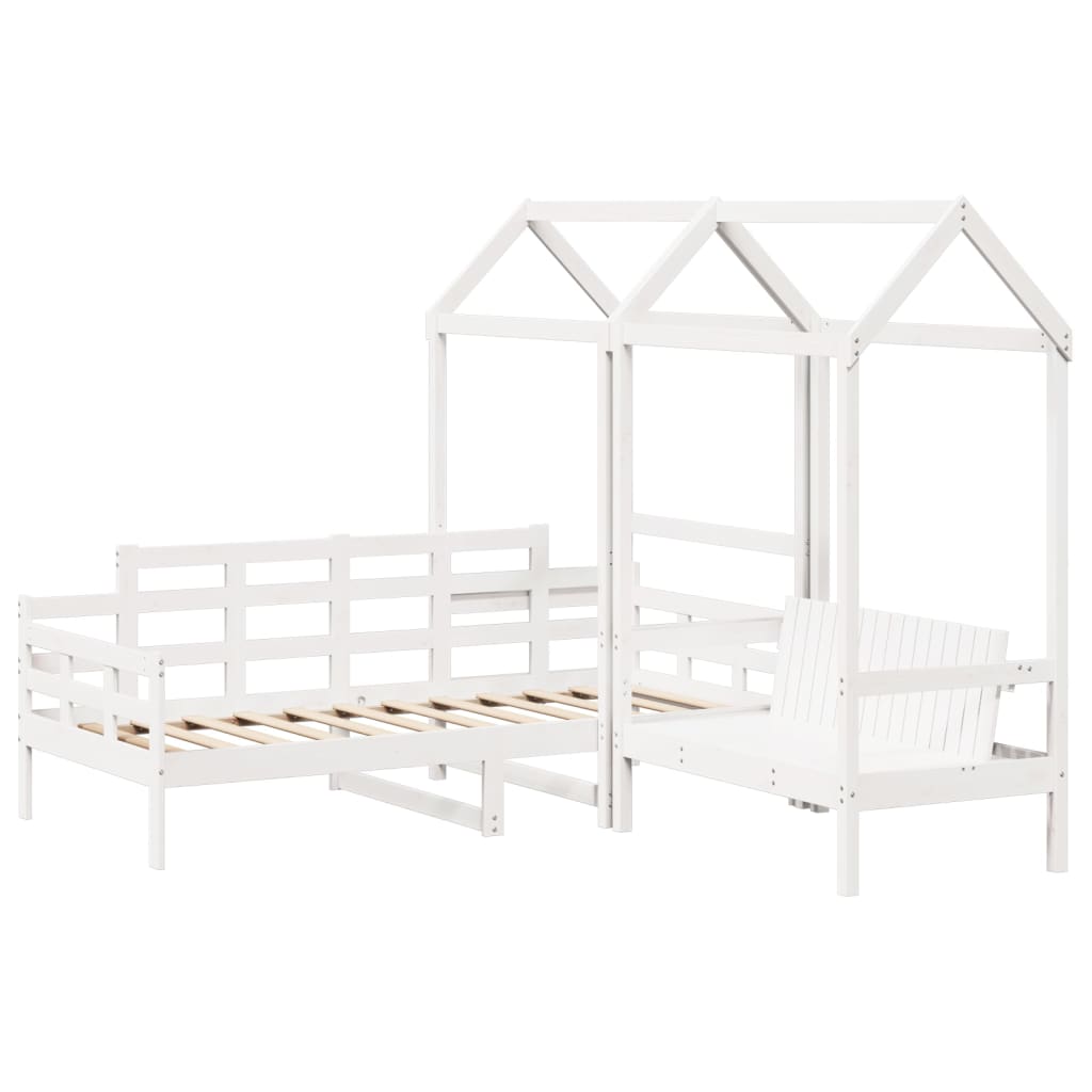 Tagesbett und Bank mit Dach Weiß 80x200 cm Kiefernholz