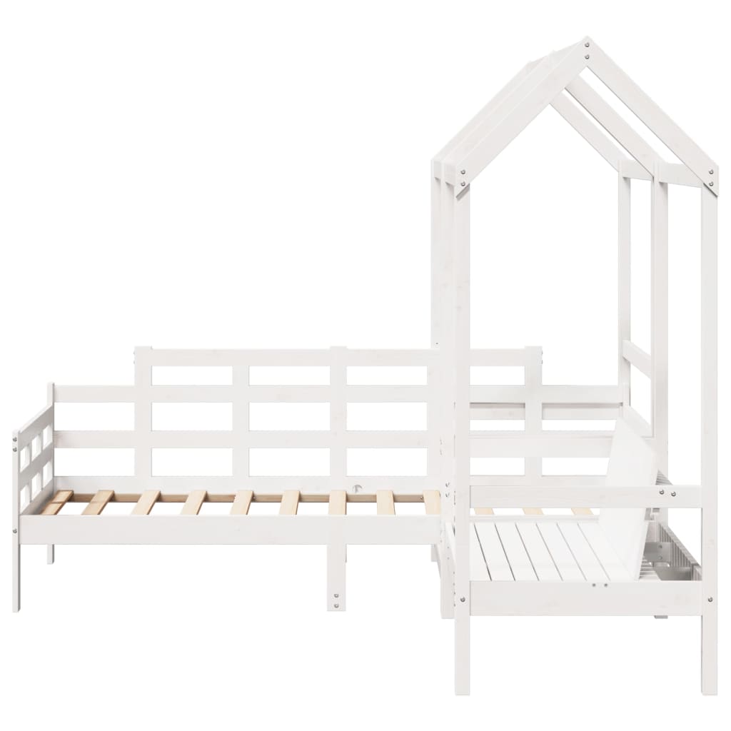 Tagesbett und Bank mit Dach Weiß 90x200 cm Kiefernholz
