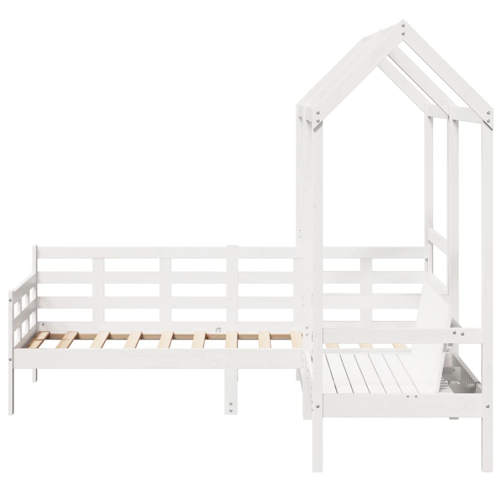 Tagesbett und Bank mit Dach Weiß 90x200 cm Kiefernholz