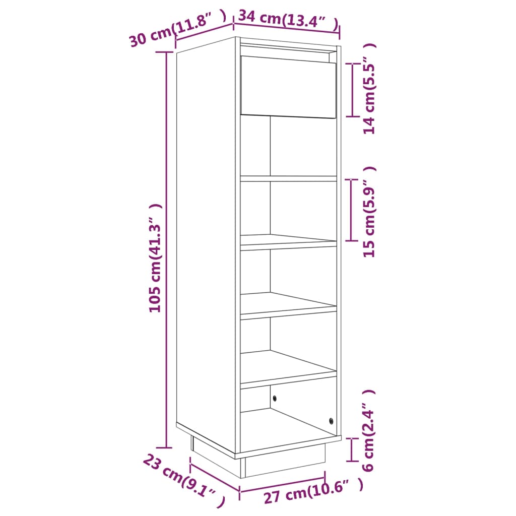 Schuhregal Weiß 30x34x105 cm Massivholz Kiefer