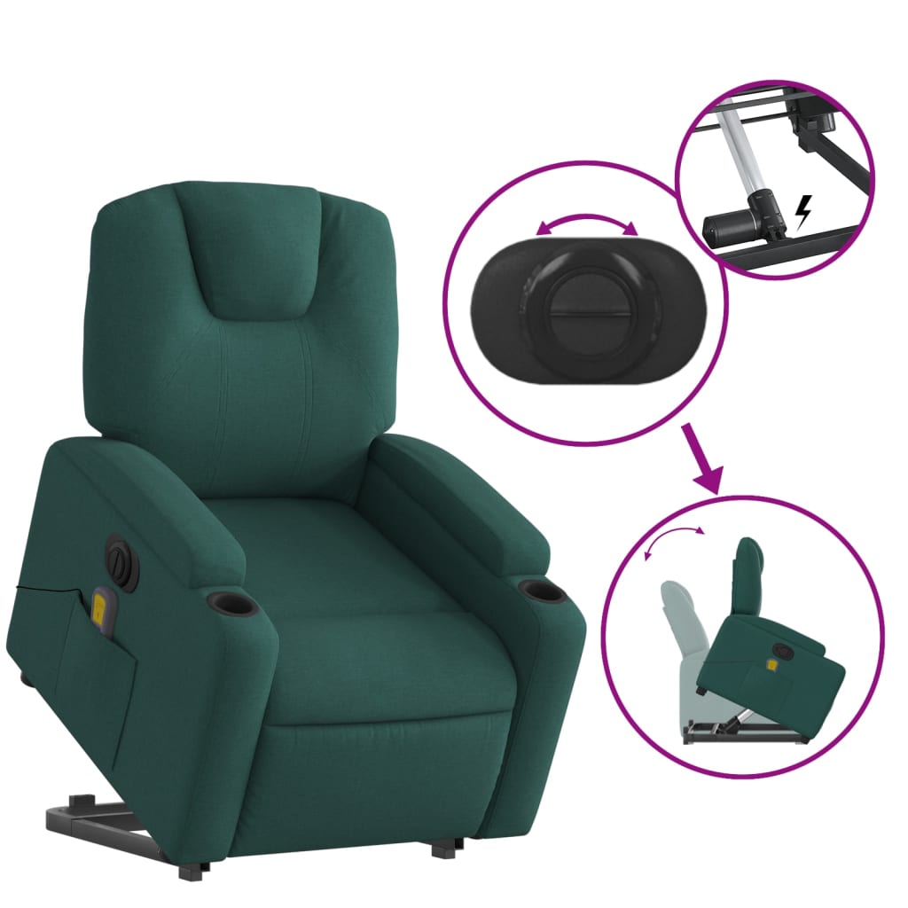 Elektrischer Massagesessel mit Aufstehhilfe Dunkelgrün Stoff