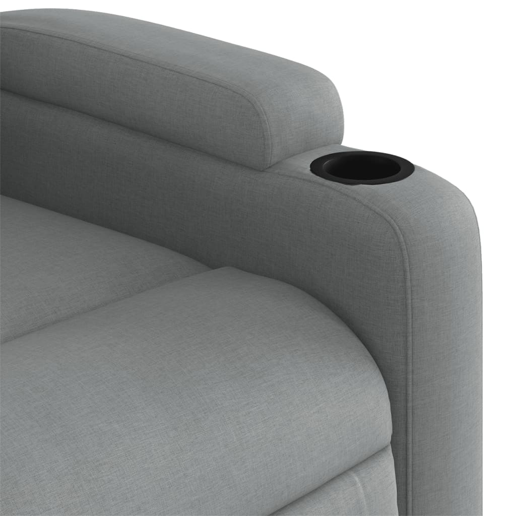 Lehne dich zurück und entspanne dich in diesem äußerst bequemen Massagesessel! Elektrische Liegefunktion: Dieser Relaxsessel ist mit einem Elektromotor ausgestattet, der Fußstütze und Rückenlehne durch einfaches Drücken des seitlichen Knopfes automatisch in jede gewünschte Position bringt. Diese Funktion ermöglicht eine maximale Neigung von 135 Grad. Darüber hinaus lässt sich die Rückenlehne auf Knopfdruck automatisch in die ursprünglichen Position zurückbringen.Vibrationsfunktion: Dank der 6 Massagepunkte genießt du eine gezielte Massage. Zudem lassen sich verschiedene Massageprogramme über die mitgelieferte Handsteuerung auswählen. Die Massagefunktion wird über den USB-Anschluss betrieben, der eine zertifizierte 5-V-USB-Stromquelle erfordert (nicht im Lieferumfang enthalten).Bequemes Sitzerlebnis: Die dick gepolsterte Sitzfläche, die Rückenlehne und die breiten Armlehnen sorgen für ein behagliches und wohliges Sitzgefühl. Der Bezug aus Stoff weist eine schlichte und saubere Optik auf und ist auch atmungsaktiv und langlebig.Praktische Getränkehalter und Seitentasche: Dieser Sessel verfügt über zwei praktische Becherhalter und eine Seitentasche, in der du wichtige Sachen griffbereit aufbewahren kannst.Solider und stabiler Rahmen: Der Rahmen aus Holz und Metall sorgt für eine solide Struktur und hohe Stabilität. Dieser TV-Sessel ist bequem und langlebig.