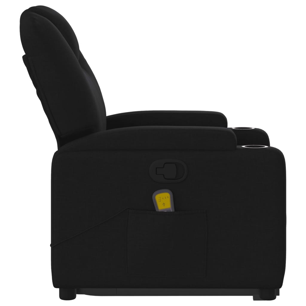 Lehne dich zurück und entspanne dich in diesem äußerst bequemen Massagesessel mit Aufstehhilfe! Elektrische Aufstehhilfe: Dieser Relaxsessel ist mit einem Elektromotor zum Anheben ausgestattet. Dank der Aufstehhilfe, die den gesamten Sessel nach oben bringt, kannst du ganz einfach auf Knopfdruck aufstehen, ohne deinen Rücken und deine Knie zu belasten.Manuelle Liegefunktion: Dieser Ruhesessel lässt sich mittels des Griffs an der rechten Seite verstellen. So kannst du das Fußteil und die Rückenlehne manuell in jede beliebige Position bringen, um höchsten Komfort zu genießen. Die Rückenlehne lässt sich max. 135 Grad nach hinten verstellen. Durch einfaches Ziehen lässt sie sich schnell wieder in die ursprüngliche Position bringen.Vibrationsfunktion: Dank der 6 Massagepunkte genießt du eine gezielte Massage. Zudem lassen sich verschiedene Massageprogramme über die mitgelieferte Handsteuerung auswählen. Die Massagefunktion wird über den USB-Anschluss betrieben, der eine zertifizierte 5-V-USB-Stromquelle erfordert (nicht im Lieferumfang enthalten).Bequemes Sitzerlebnis: Die dick gepolsterte Sitzfläche, die Rückenlehne und die breiten Armlehnen sorgen für ein behagliches und wohliges Sitzgefühl. Der Bezug aus Stoff weist eine schlichte und saubere Optik auf und ist auch atmungsaktiv und langlebig.Praktische Getränkehalter und Seitentasche: Dieser Sessel verfügt über zwei praktische Getränkehalter und eine Seitentasche, in der du deine Fernbedienung oder andere wichtige Sachen griffbereit aufbewahren kannst.Solider und stabiler Rahmen: Der Rahmen aus Holz und Metall sorgt für eine solide Struktur und hohe Stabilität. Dieser TV-Sessel ist bequem und langlebig.
