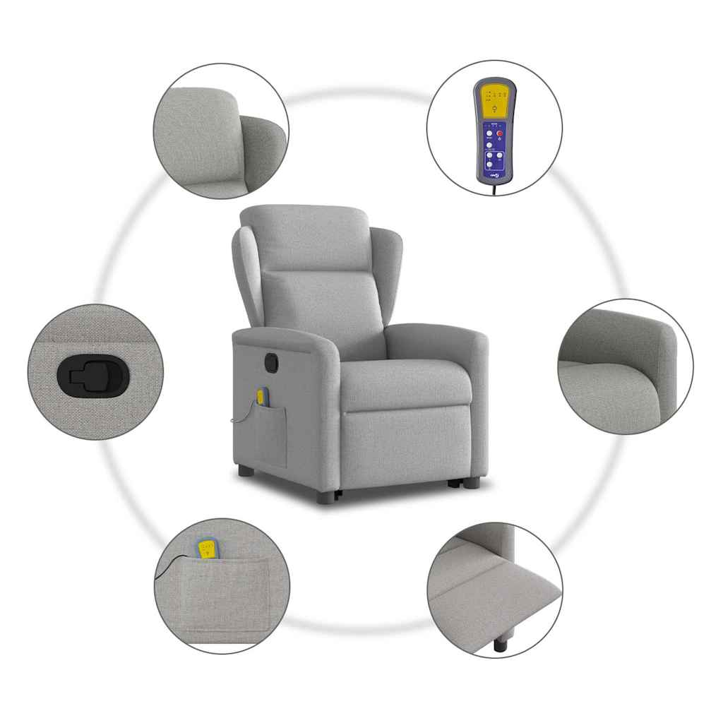 Massagesessel mit Aufstehhilfe Wolkengrau Stoff