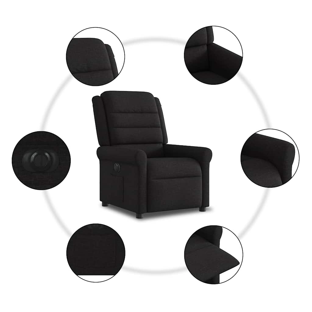 Lehne dich zurück und entspanne dich in diesem äußerst bequemen Fernsehsessel! Elektrische Liegefunktion: Dieser Relaxsessel ist mit einem Elektromotor ausgestattet, der Fußstütze und Rückenlehne durch einfaches Drücken des seitlichen Knopfes automatisch in jede gewünschte Position bringt. Diese Funktion ermöglicht eine maximale Neigung von 135 Grad. Darüber hinaus lässt sich die Rückenlehne auf Knopfdruck automatisch in die ursprünglichen Position zurückbringen.Bequemes Sitzerlebnis: Die dick gepolsterte Sitzfläche, die Rückenlehne und die breiten Armlehnen sorgen für ein behagliches und wohliges Sitzgefühl. Der Bezug aus Stoff weist eine schlichte und saubere Optik auf und ist auch atmungsaktiv und langlebig.Praktische Seitentasche: Dieser Sessel verfügt über eine Seitentasche, in der du wichtige Sachen griffbereit aufbewahren kannst.Solider und stabiler Rahmen: Der Rahmen aus Holz und Metall sorgt für eine solide Struktur und hohe Stabilität. Dieser TV-Sessel ist bequem und langlebig.