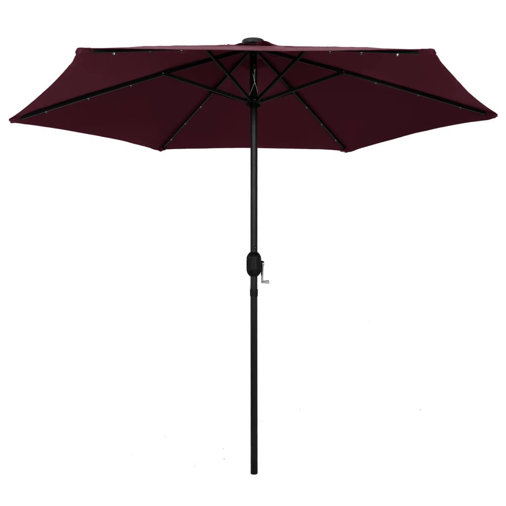 Sonnenschirm mit LED-Beleuchtung und Alu-Mast 270 cm Bordeaux