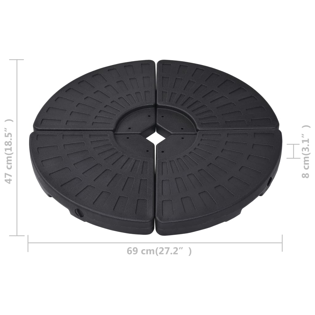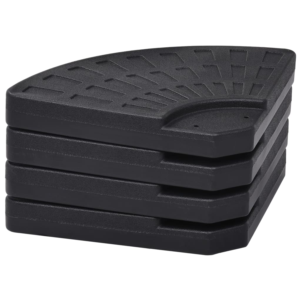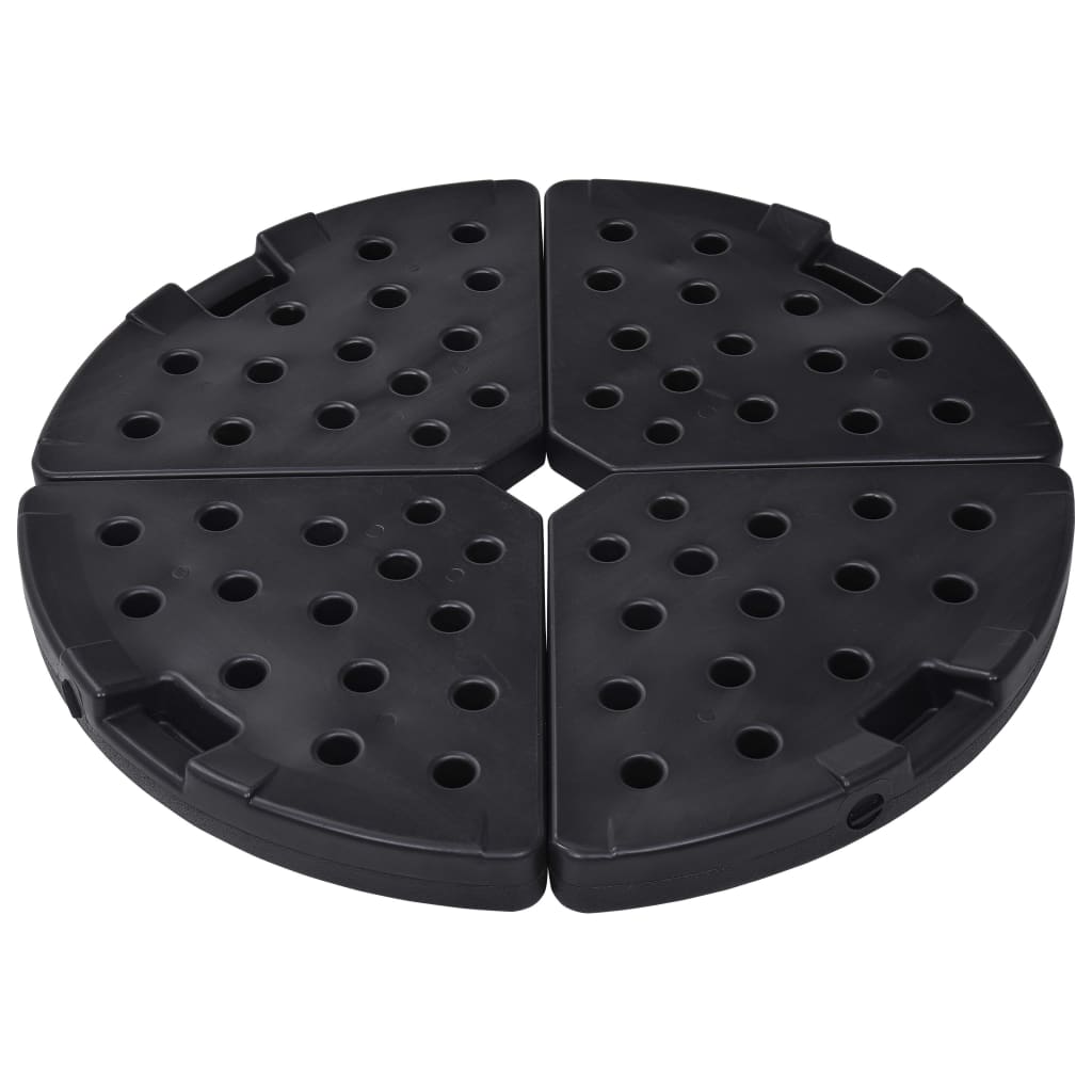 Halten Sie IhrenAmpelschirm bei rauem Wetter und starkem Wind mit diesem hochbelastbaren wasser-/sandgefüllten Schirmständer stabil. Dieser Satz von 4 Schirmfüße ist für einen Ampelschirm oder Marktschirm mit Kreuzfuß konzipiert. Dieses aus langlebigem HDPE-Kunststoff hergestellte Ständer-Set ist rostfrei und wird sicherlich viele Jahre lang seinen Dienst tun. Er wird in 4 separaten Teilen geliefert, die wenn mit Wasser gefüllt ca. 60 L bzw. mit Sand ca. 72 kg Gewicht halten. Ohne die Füllung ist der Schirmständer leicht, sodass er dank am Griff leicht zu tragen und zu lagern ist. Die Lieferung umfasst 4 fächerförmige Sonnenschirmständer.