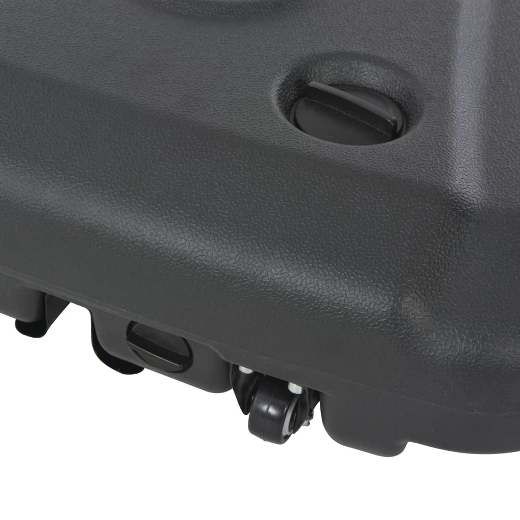 Dieser Sonnenschirmständer ist sehr praktisch, da er optimalen Halt für Ihre Sonnenschirme bietet und sie am Umfallen hindert. Er ist mit zwei Rädern ausgestattet, damit er leicht verschoben werden kann. Dieser Sonnenschirmfuß ist mit max. 60 kg Wasser und ca. 120 kg Sand befüllbar, besteht aus strapazierfähigem Kunststoff und verspricht so eine lange Lebensdauer.