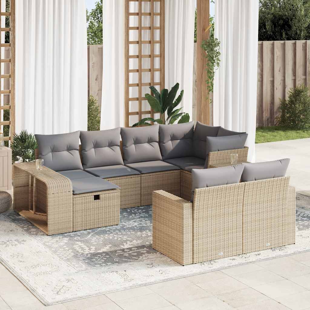 10-tlg. Garten-Sofagarnitur mit Kissen Beige Poly Rattan