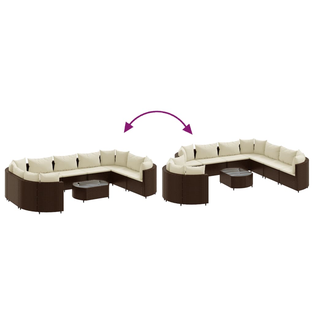 10-tlg. Garten-Sofagarnitur mit Kissen Braun Poly Rattan