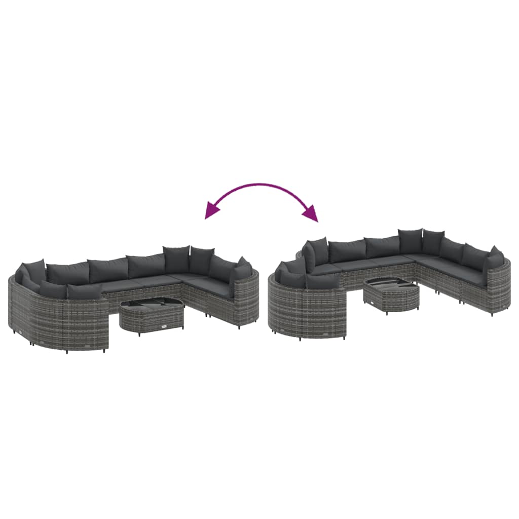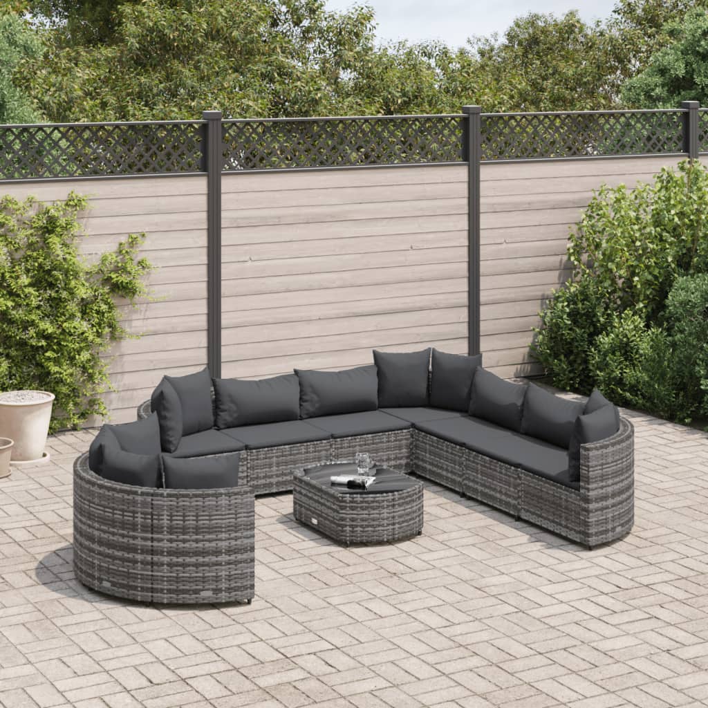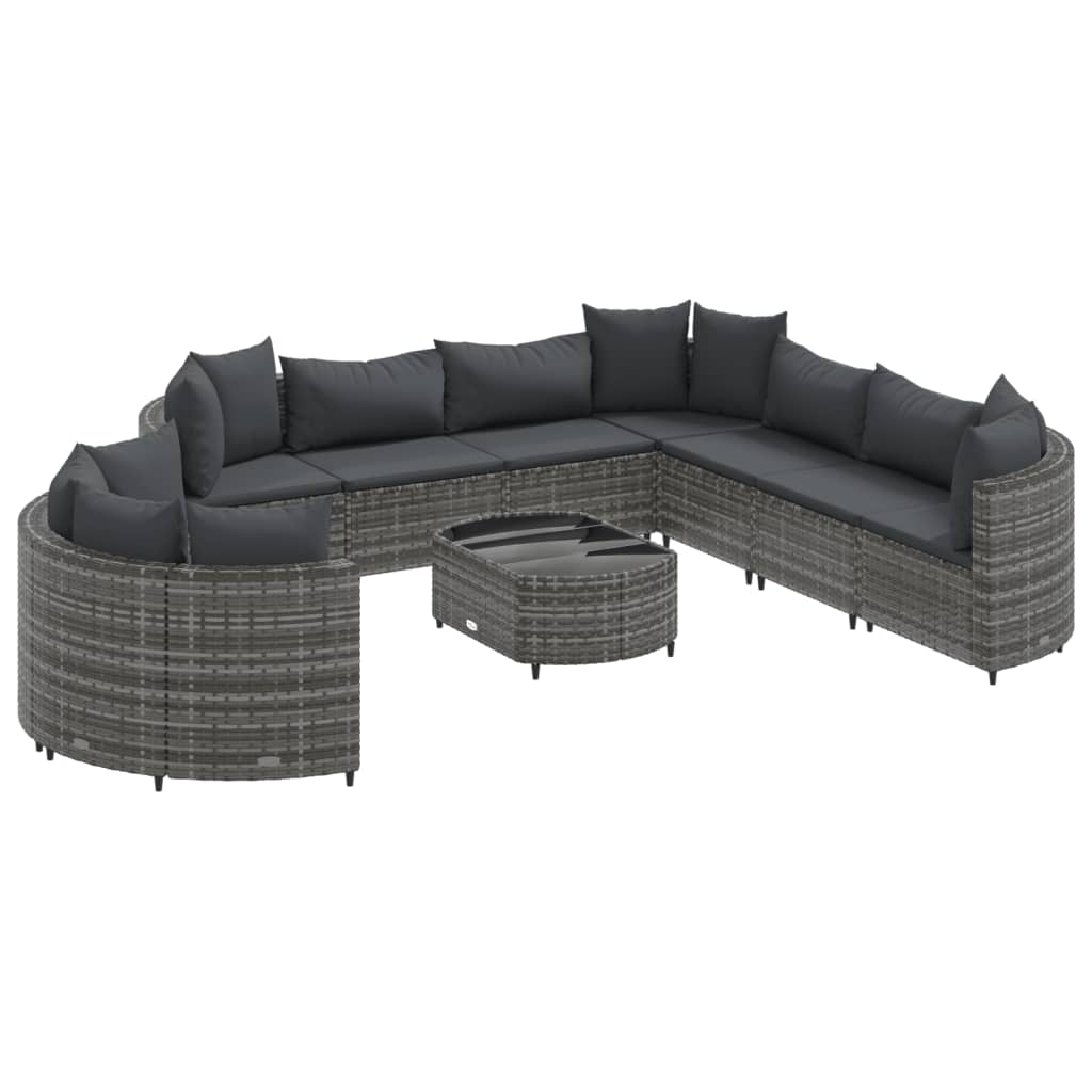 10-tlg. Garten-Sofagarnitur mit Kissen Grau Poly Rattan