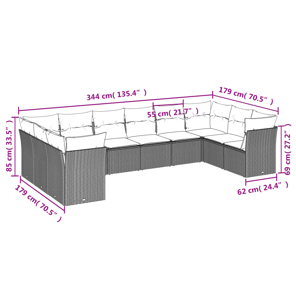10-tlg. Garten-Sofagarnitur mit Kissen Schwarz Poly Rattan
