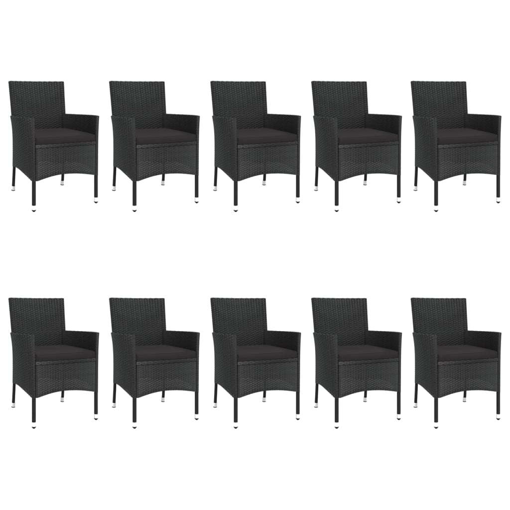 11-tlg. Garten-Essgruppe mit Kissen Schwarz Poly Rattan