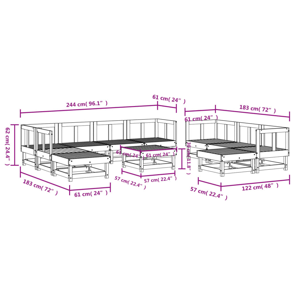 11-tlg. Garten-Lounge-Set Kiefernholz Imprägniert