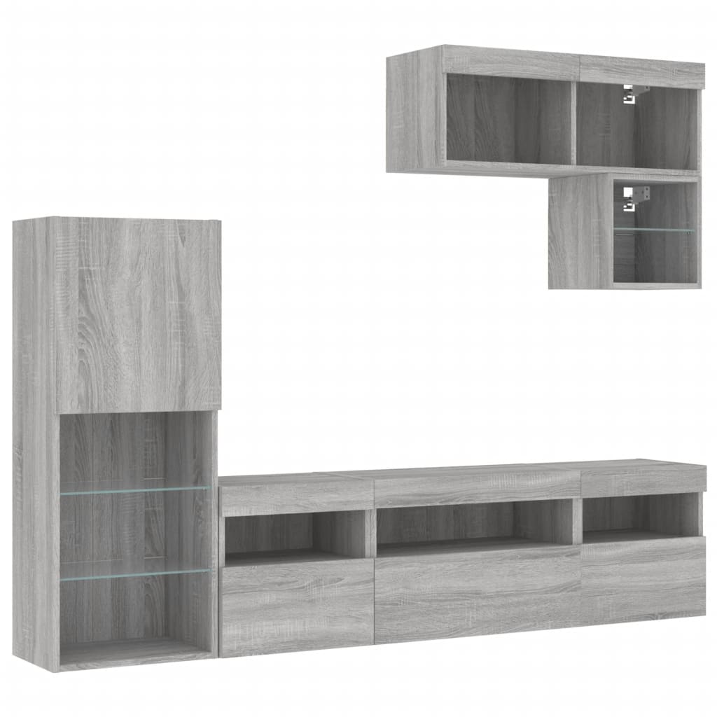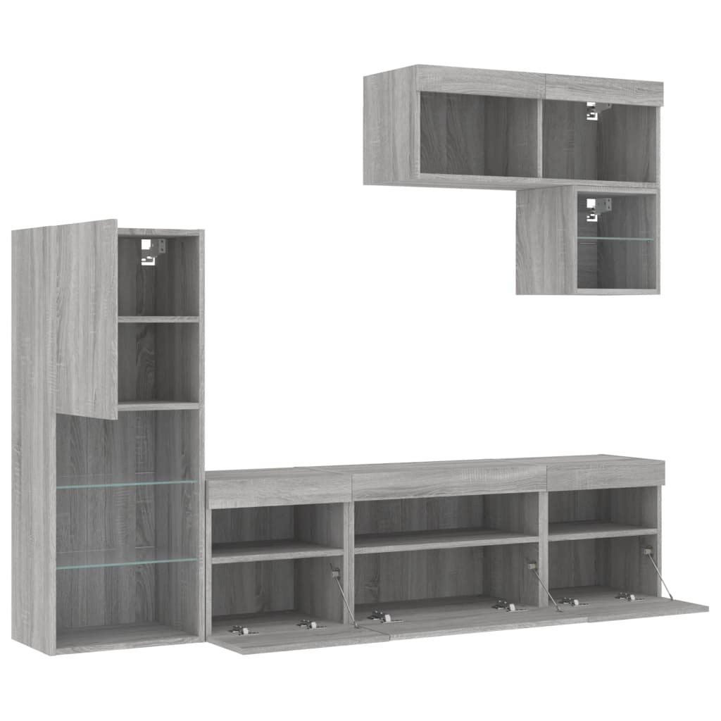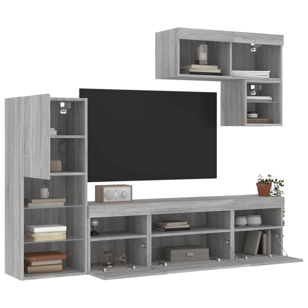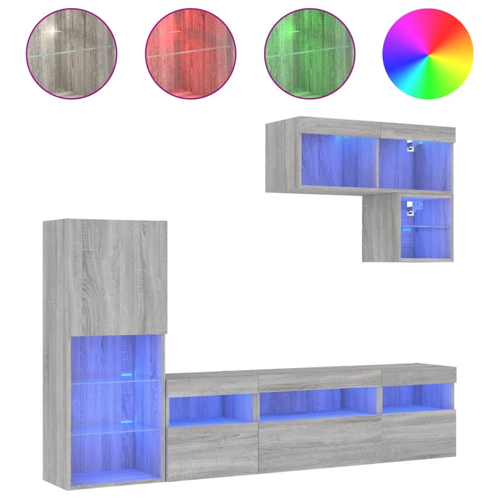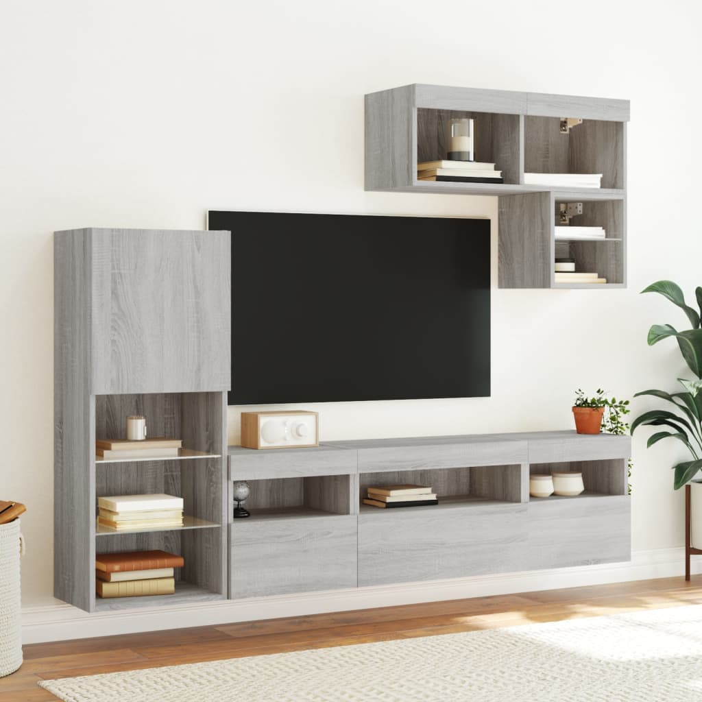 Diese TV-Wandschränke bieten eine perfekte Lösung, um zusätzlichen Stauraum in deinem Wohnraum zu schaffen und für Ordnung zu sorgen. Robustes Material: Holzwerkstoff ist ein Material von außergewöhnlicher Qualität mit glatter Oberfläche, das sich durch Festigkeit, Stabilität und Feuchtigkeitsbeständigkeit auszeichnet.RGB-LED-Leuchten: Die Wohnwand ist mit lebendigen RGB-LED-Leuchten ausgestattet. Mit verschiedenen anpassbaren Menüs kannst du die Farbe der Lichter mühelos wechseln und sie sogar auf automatische Anpassung einstellen. Diese LED-Leuchten unterstreichen nicht nur den modernen Look des TV-Wandschranks, sondern tragen auch zu seiner trendigen Optik bei.Wandmontage: Der TV-Schrank lässt sich an der Wand montieren, um zusätzlichen Stauraum zu schaffen. Auf diese Weise kannst du deine Bodenfläche maximieren und für Ordnung im Raum sorgen.Reichlich Stauraum: Das TV-Wandschrank-Set bietet reichlich Platz, um Bücher, DVDs, Zeitschriften, Medien und andere Alltagsgegenstände übersichtlich und griffbereit zu verstauen.Vielseitiges Design: Du kannst den Schrank als TV-Schrank verwenden oder ihn im Arbeitszimmer an der Wand montieren, um Utensilien oder andere Gegenstände bequem aufzubewahren. Zudem verwandelt er eine leere Wand sofort in ein Design-Element. Gut zu wissen:Schrauben und Dübel für die Innenseite der Wand sind nicht enthalten. Wir empfehlen dir, Schrauben und Dübel zu finden und zu verwenden, die speziell für deine Wände geeignet sind. Wenn du dir nicht sicher bist, kannst du dich an einen Fachmann wenden. Bitte lies und befolge jeden Schritt in der Anleitung.Das Produkt verfügt über einen USB-Anschluss, für den eine zertifizierte 5V-USB-Stromquelle erforderlich ist (nicht im Lieferumfang enthalten).