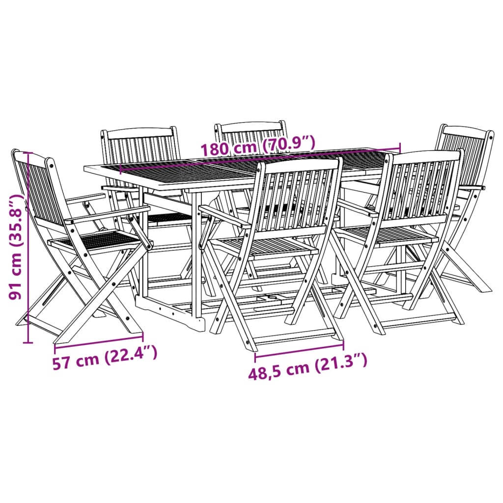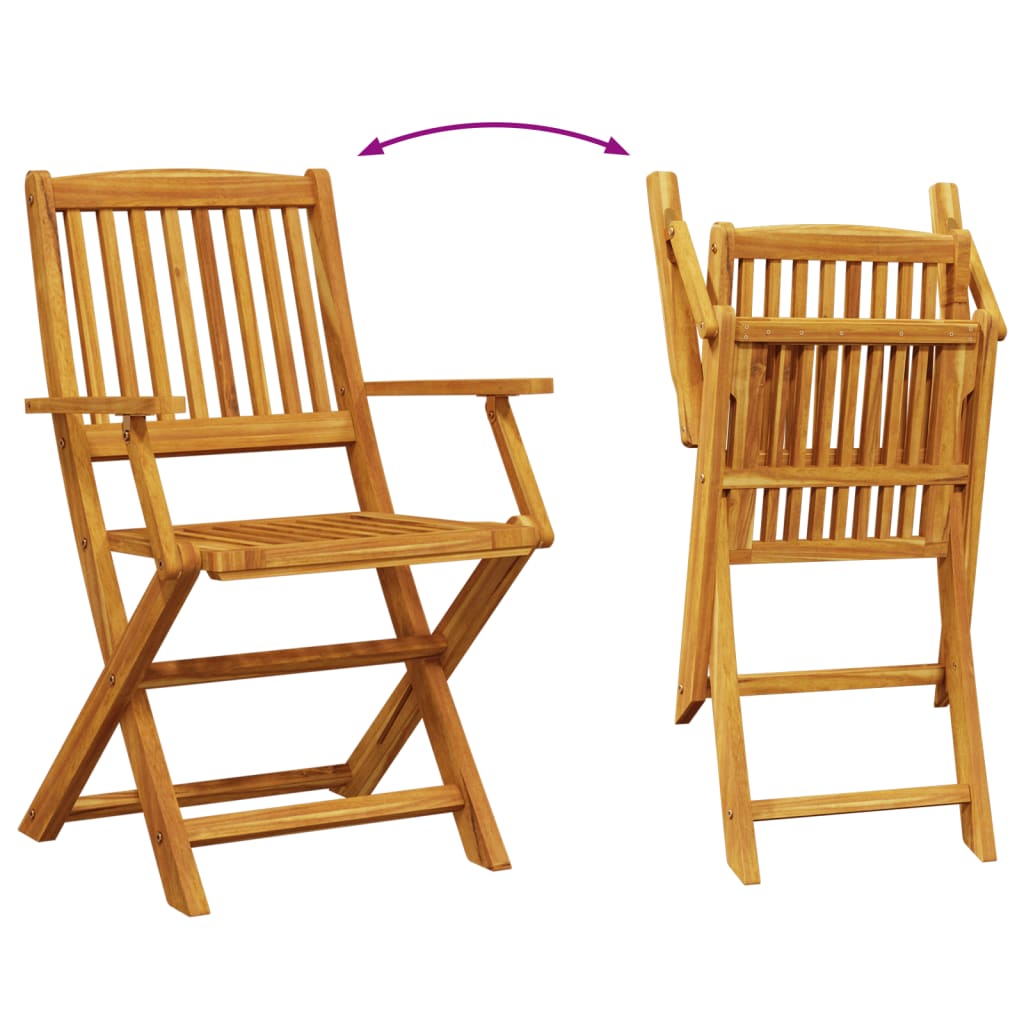 Entspanne dich und genieße einen herrlichen Nachmittagstee und Mahlzeiten mit deiner Familie und deinen Freunden an dieser klassischen Essgruppe aus Holz! Robust und stabil: Massives Akazienholz ist für seine Festigkeit und Haltbarkeit bekannt. Seine Farbtöne und einzigartige Maserung verleihen ihm eine attraktive Optik. Dank seiner ausgezeichneten Stabilität und Witterungsbeständigkeit eignet sich das Holz ideal für die Herstellung von Innen- und Außenmöbeln.Klappbares Design: Der Stuhl lässt sich einfach zusammenklappen und bequem verstauen oder transportieren.Praktisches Design: Die Tischplatte ist mit einem Loch für deinen Sonnenschirm versehen, sodass du an sonnigen Tagen einen Schirm anbringen kannst, um Schatten zu genießen.Robuste Tischplatte: Dieser Garten-Esstisch verfügt über eine robuste Tischplatte. Darauf finden Snacks, Getränke und Lieblingsdekorationen Platz.Einfache Reinigung: Dank der Ölbeschichtung lassen sich der Gartentisch und die Stühle einfach mit einem feuchten Tuch reinigen. Gut zu wissen:Wir empfehlen dir, deine Gartenmöbel mit einer wasserdichten Hülle zu schützen, um lange Zeit eine ansprechende Optik aufzuweisen.