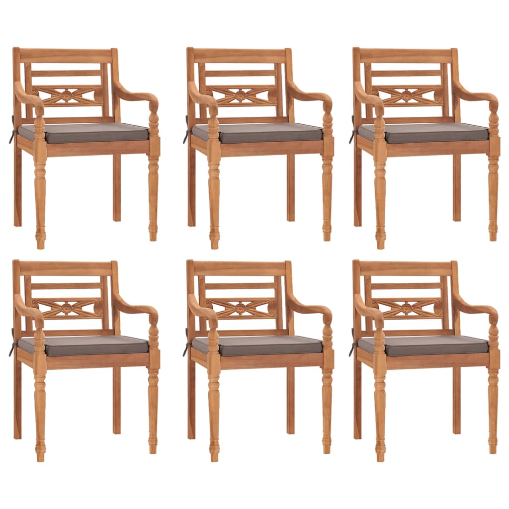 Mit dieser Batavia-Essgruppe aus Holz kannst du eine angenehme Mahlzeit oder den Nachmittagstee in deinem Außenbereich genießen! Mit ihren zarten, geschwungenen Armlehnen und dekorativen Schnitzereien ist dieses Gartengarnitur ein echter Hingucker im Garten oder auf der Terrasse! Robustes Material: Massives Teakholz ist ein wunderschönes Naturmaterial. Es wurde abgelagert, getrocknet und anschließend fein geschliffen, um eine sehr glatte Optik und Haptik zu erhalten. Teakholz ist für seine außergewöhnliche Festigkeit und Witterungsbeständigkeit bekannt.Praktische Tischplatte: Die robuste Tischplatte bietet Platz für Snacks, Obstkörbe, Dekorationsartikel und andere Sachen.Trendiges Design: Diese formschöne Essgruppe verleiht deinem Garten einen Hauch von rustikalem Charme und eignet sich hervorragend zum Entspannen im Freien mit deinen Freunden und deiner Familie.Komfortables Sitzerlebnis: Dank der dick gepolsterten Sitzkissen ist das Möbelset sehr bequem. Gut zu wissen:Damit deine Gartenmöbel lange schön bleiben, empfehlen wir dir, sie mit einer wasserdichten Hülle zu schützen.