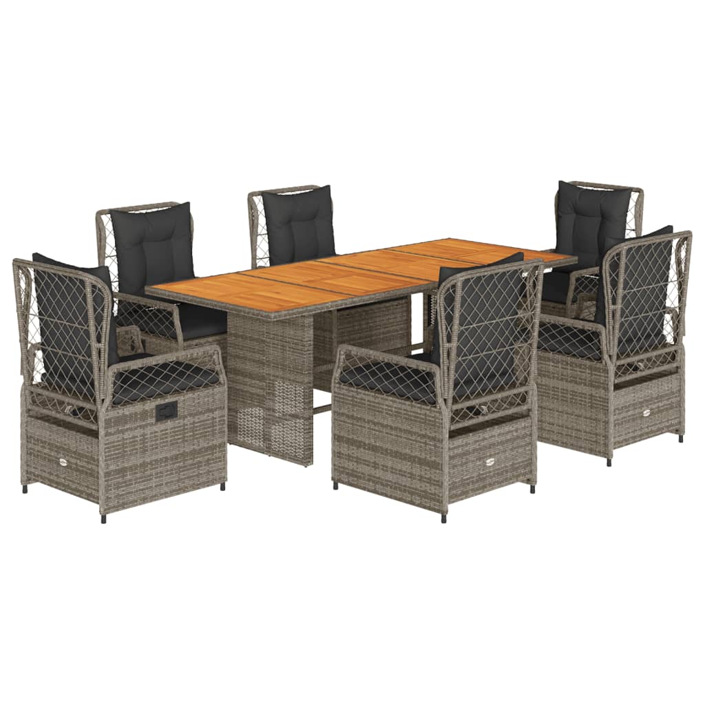7-tlg. Garten-Essgruppe mit Kissen Grau Poly Rattan