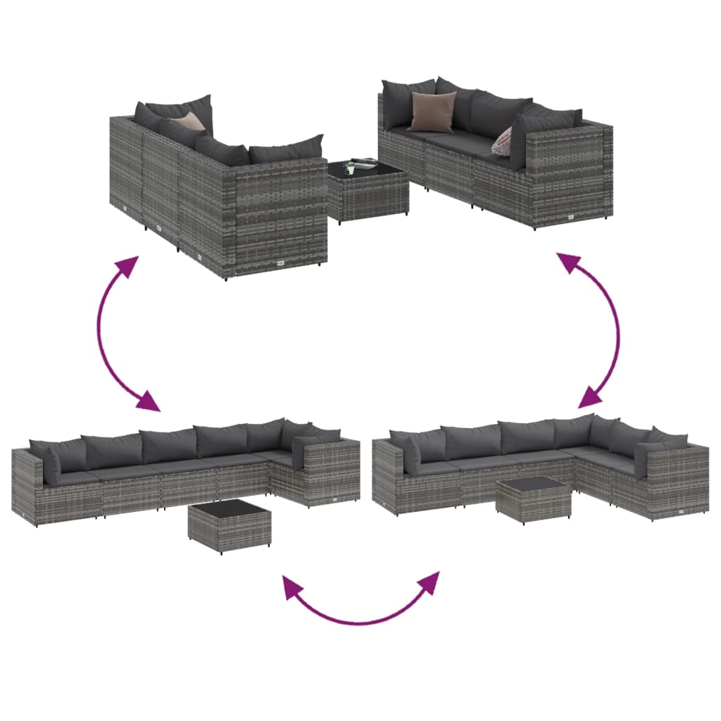 7-tlg. Garten-Lounge-Set mit Kissen Grau Poly Rattan