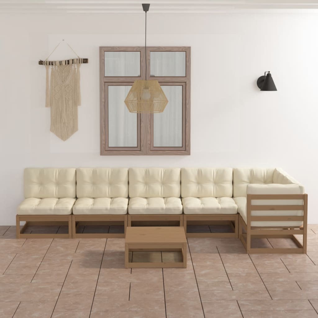 7-tlg. Garten-Lounge-Set mit Kissen Kiefer Massivholz