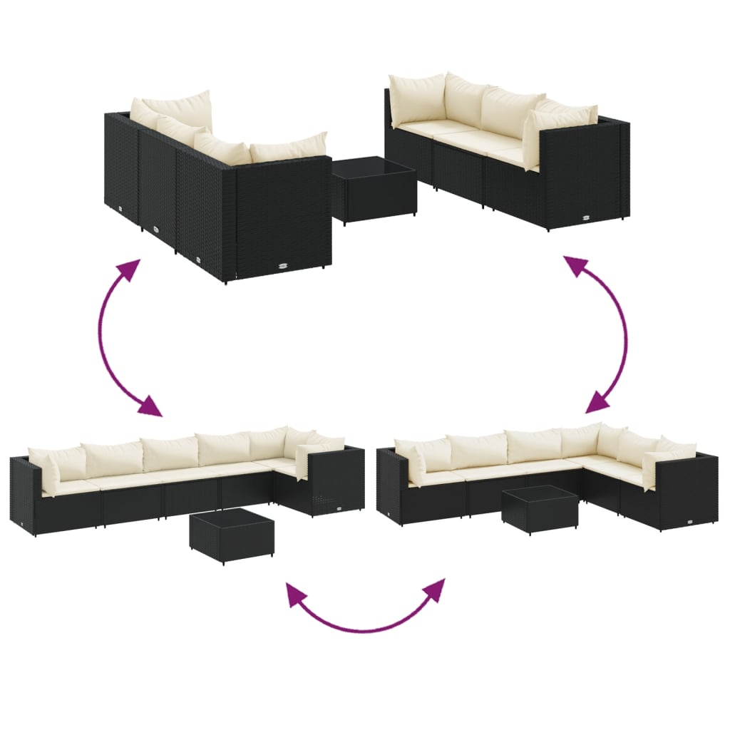 7-tlg. Garten-Lounge-Set mit Kissen Schwarz Poly Rattan