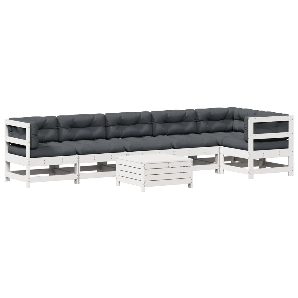 7-tlg. Garten-Lounge-Set mit Kissen Weiß Massivholz Kiefer